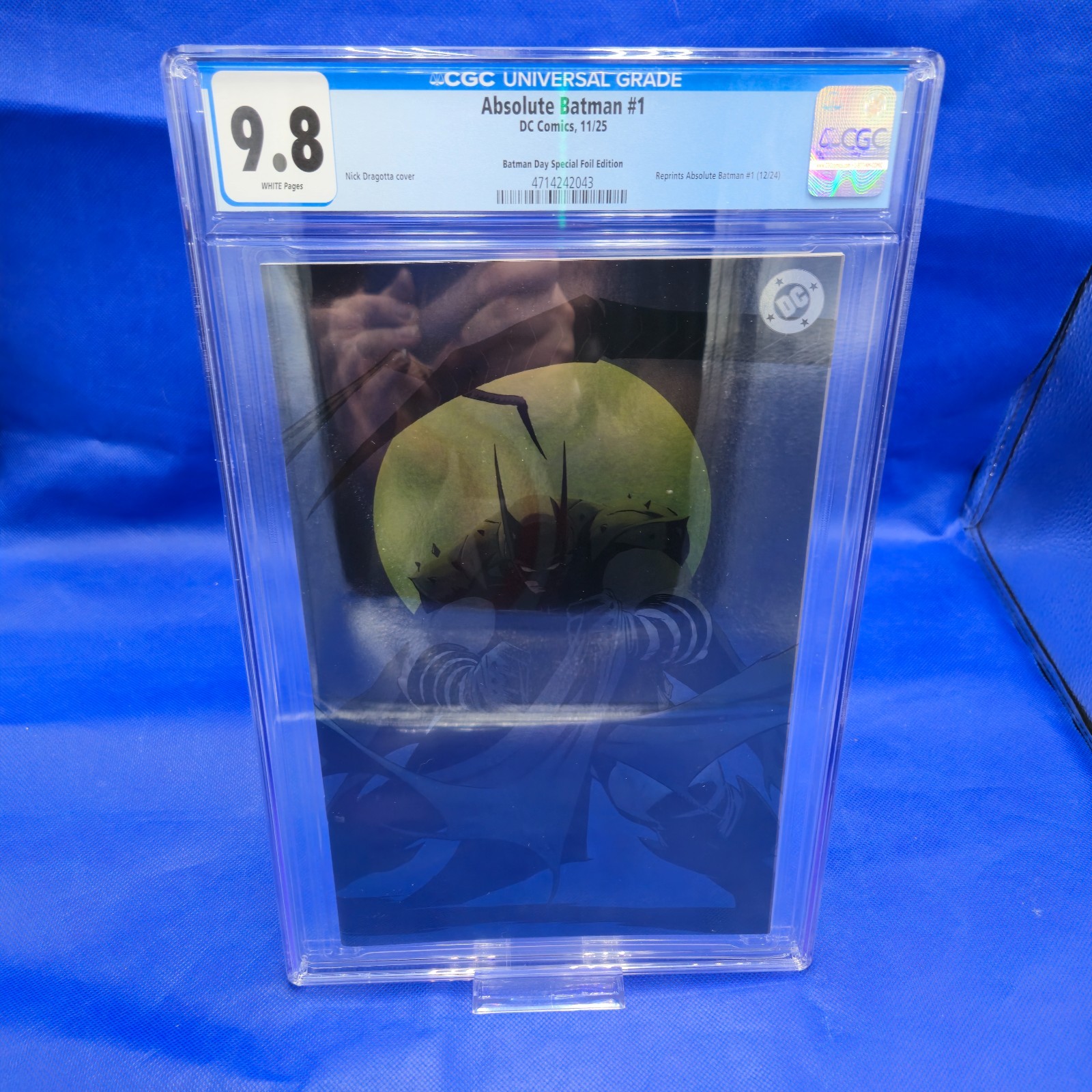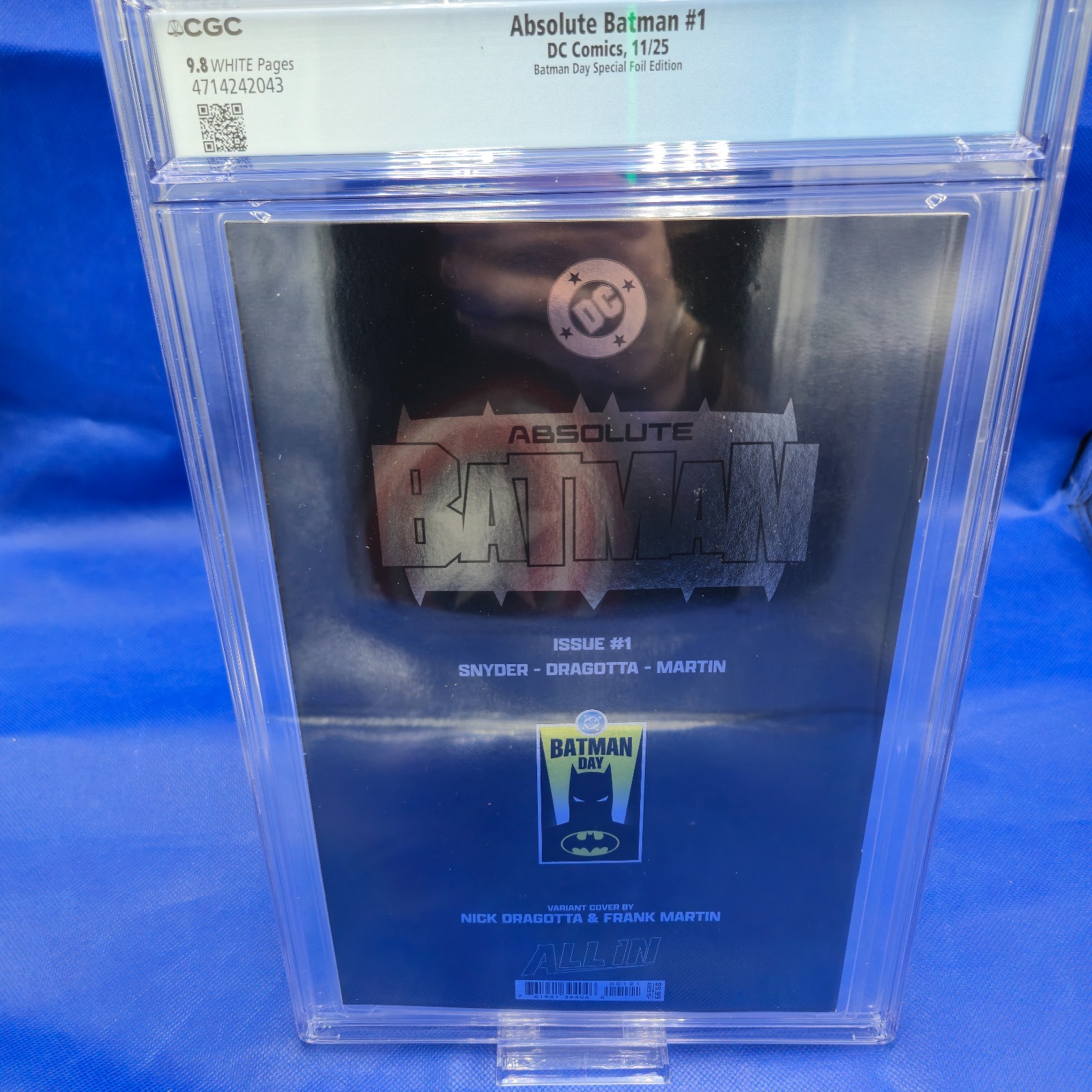 Own the sleek Absolute Batman #1 CGC 9.8 featuring the Batman Day Special FOIL Edition by Nick Dragotta!