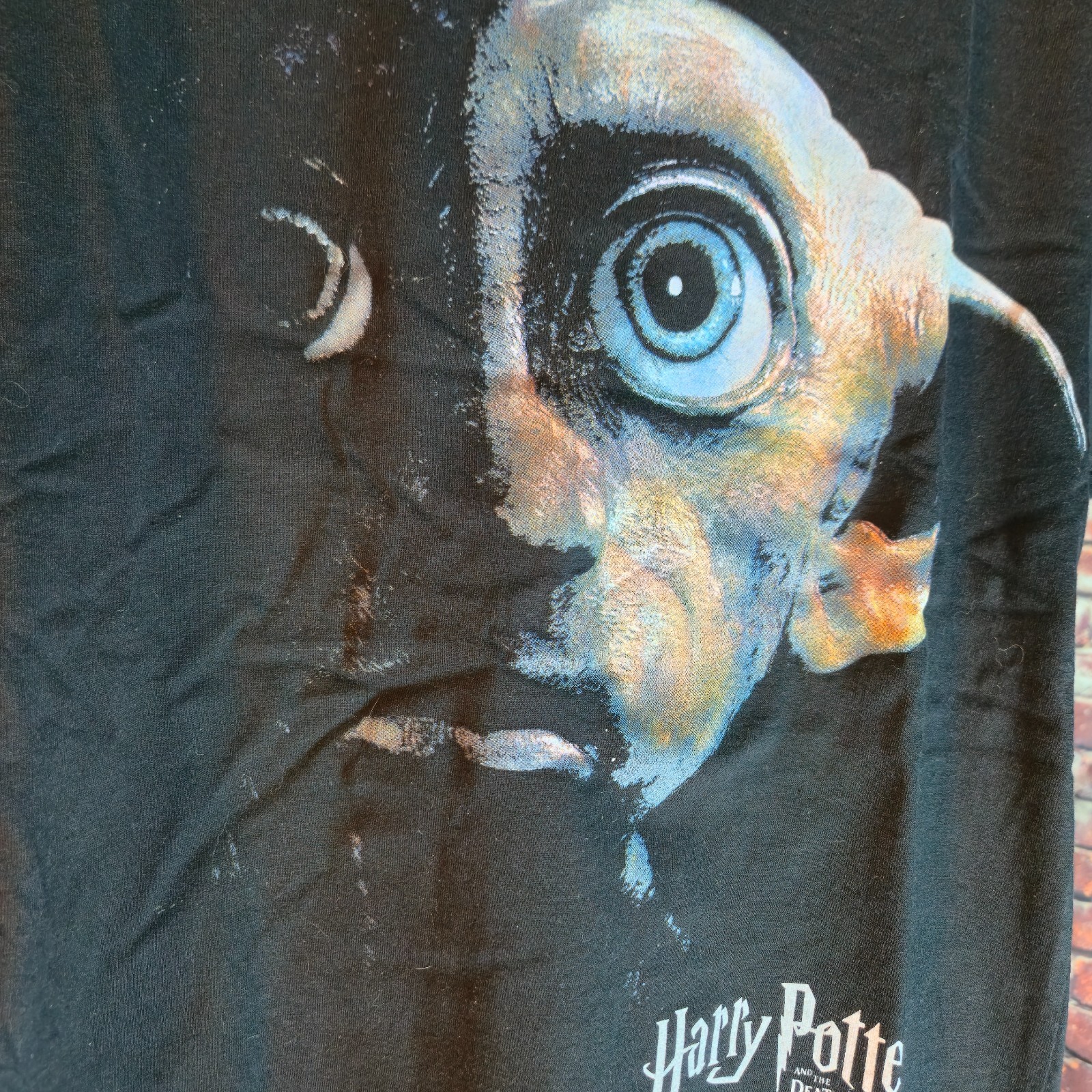 Official Wizarding World Harry Potter t-shirt featuring a striking close-up graphic of Dobby the House Elf from Harry Potter and the Deathly Hallows.