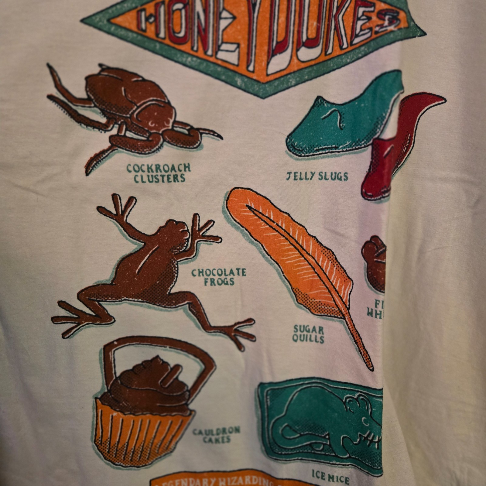 Harry Potter Honeydukes T-Shirt Adult Large L White Graphic Tee Wizarding World Candy Shop
