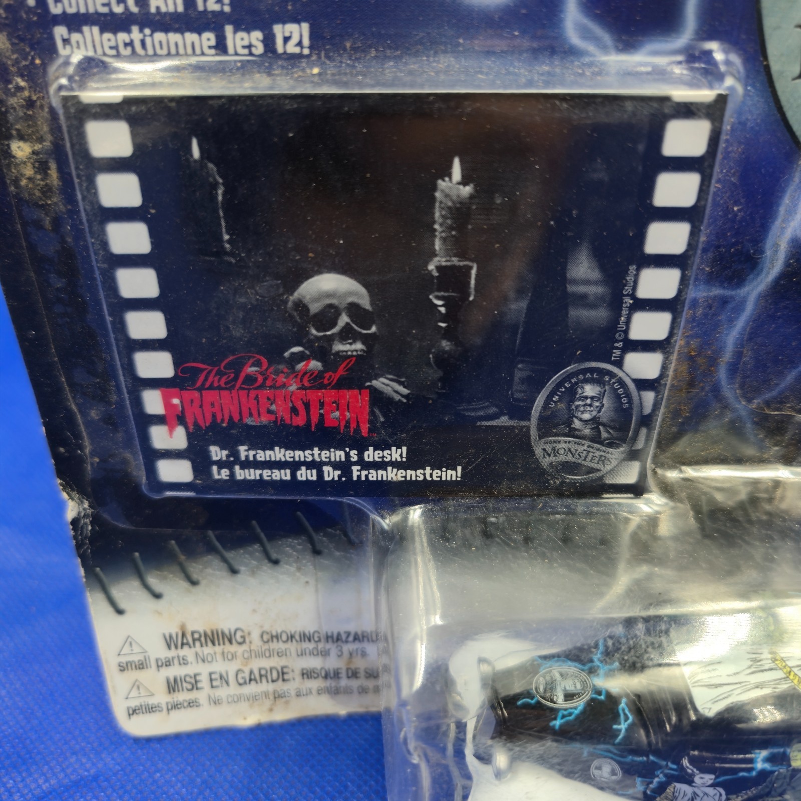 Produced by Playing Mantis as part of the Universal Monsters collectible series. Includes the themed diecast vehicle and original card with film still artwork from The Bride of Frankenstein.