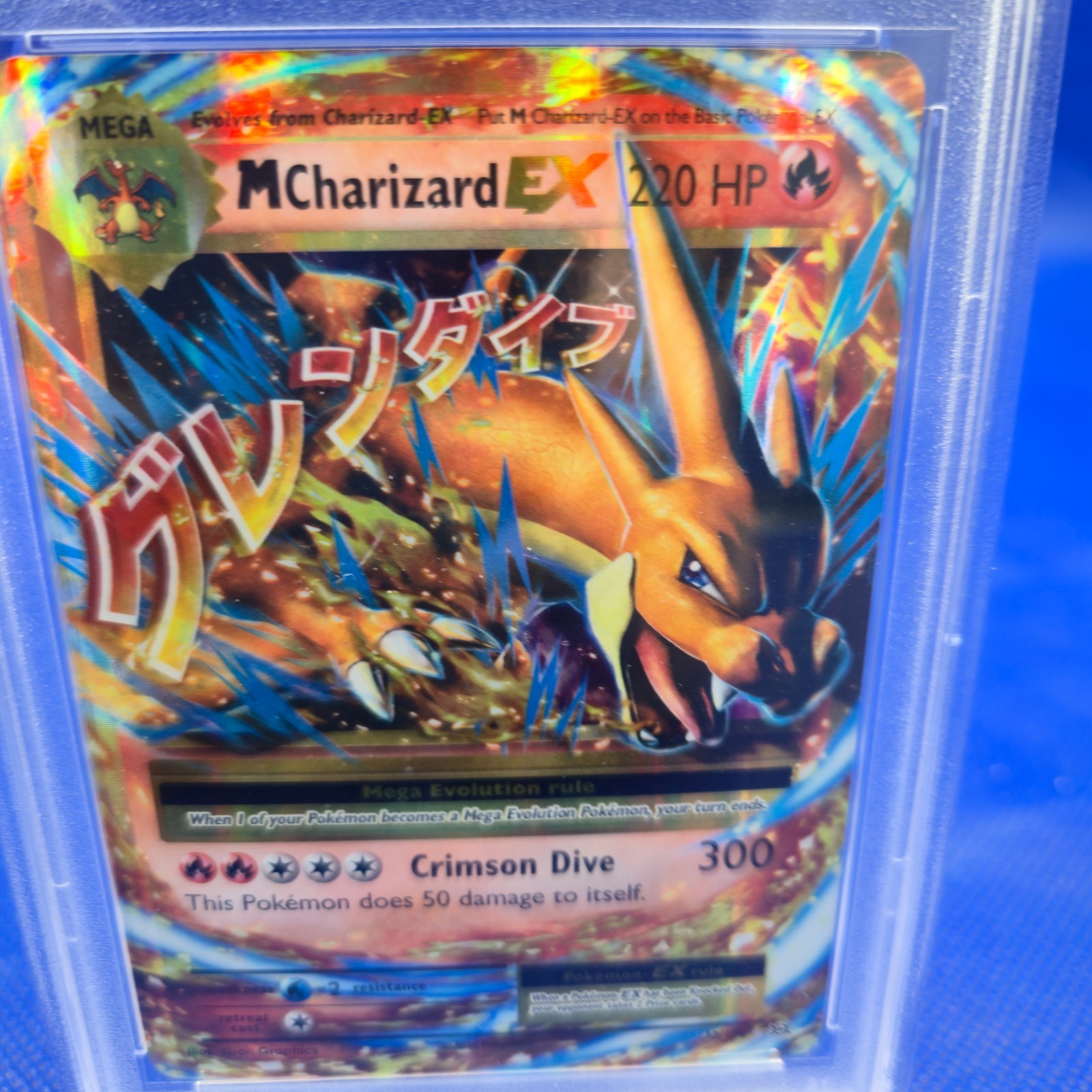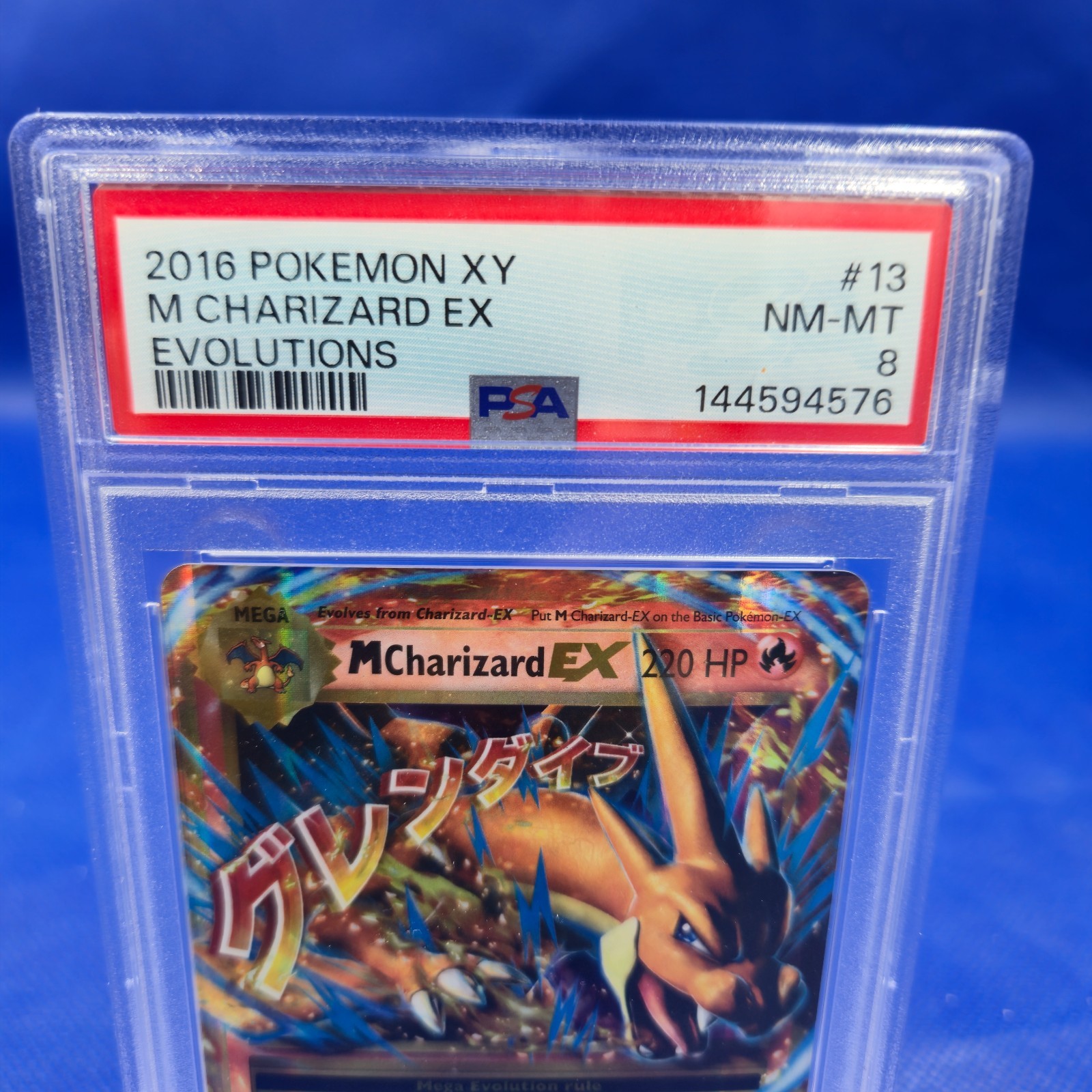 • 2016 Pokémon M Charizard EX from the XY Evolutions set graded PSA 8 (NM-MT).