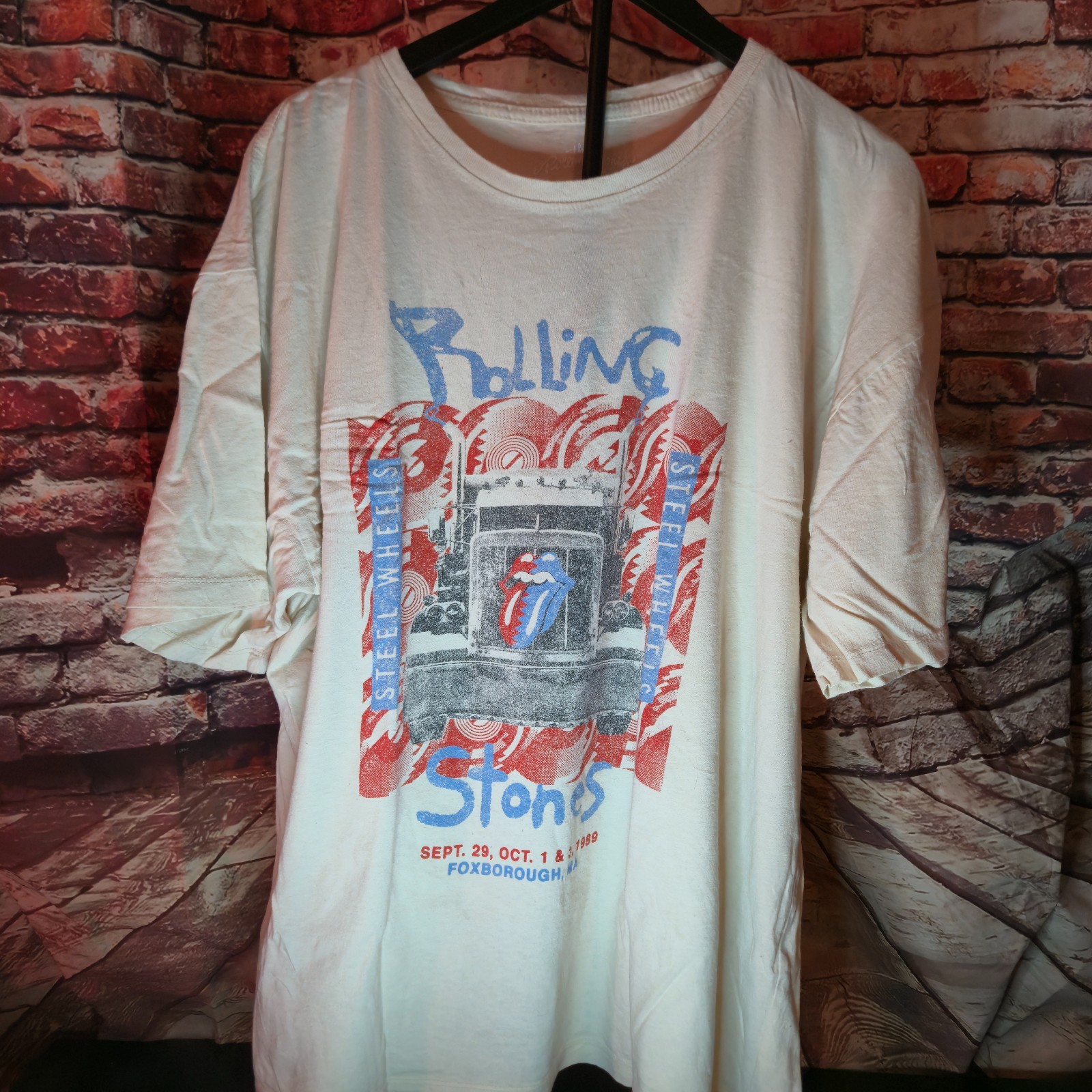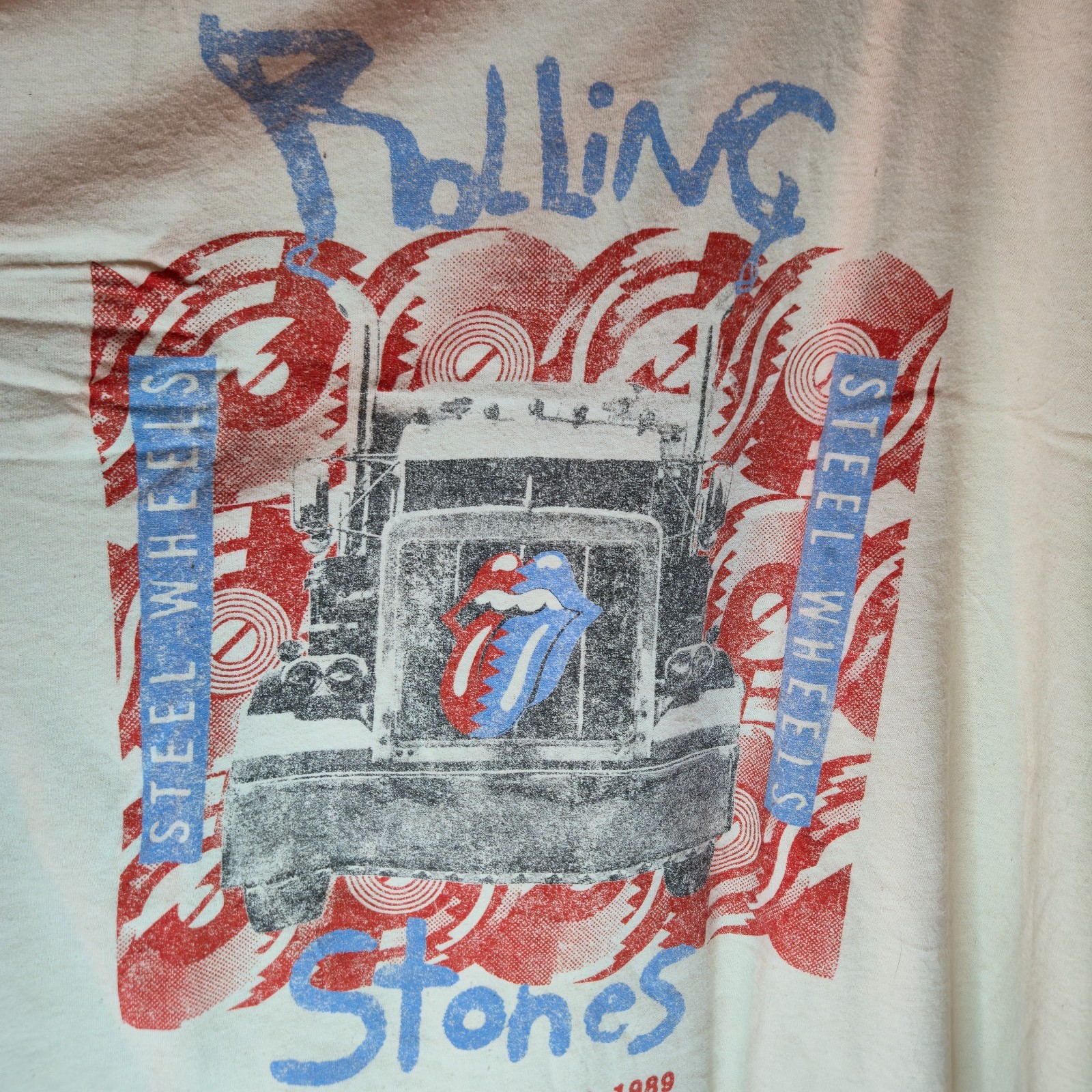 Classic style Rolling Stones graphic t-shirt featuring a retro truck and tongue logo design inspired by the 1989 Steel Wheels tour.