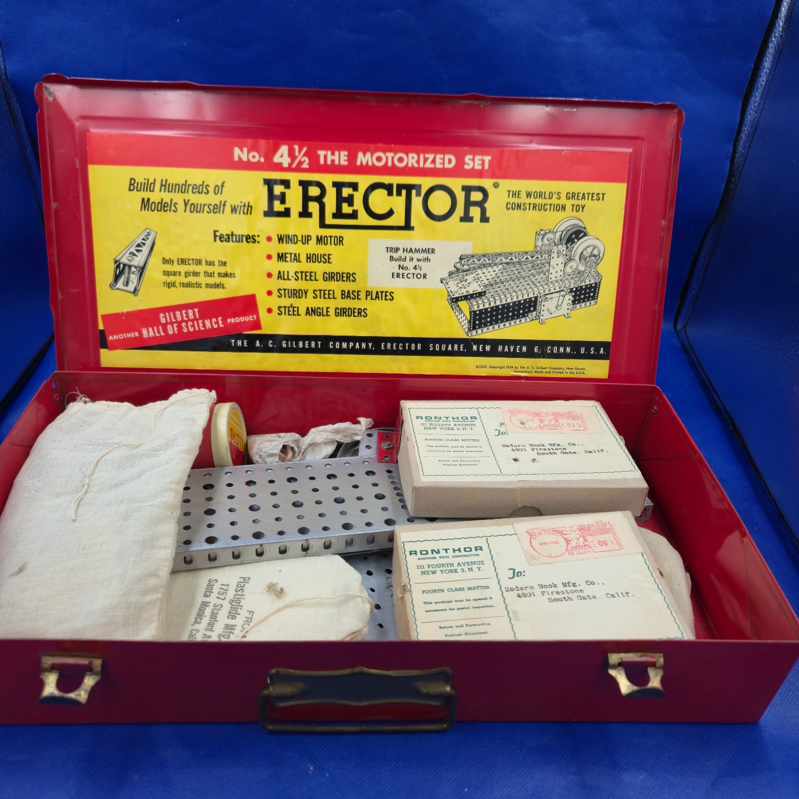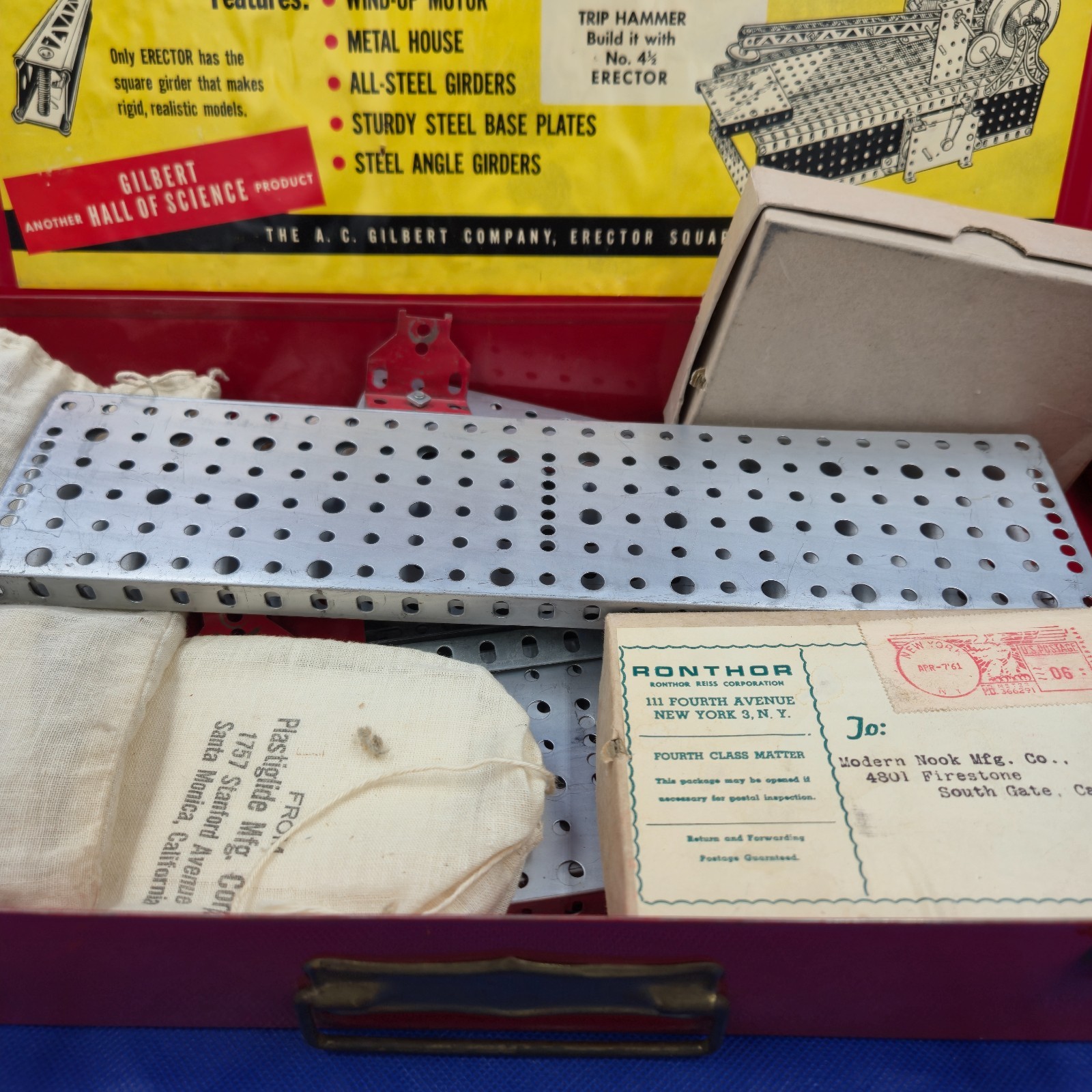 Vintage A.C. Gilbert Erector Set No. 4½ Motorized Set Red Metal Case Parts Lot