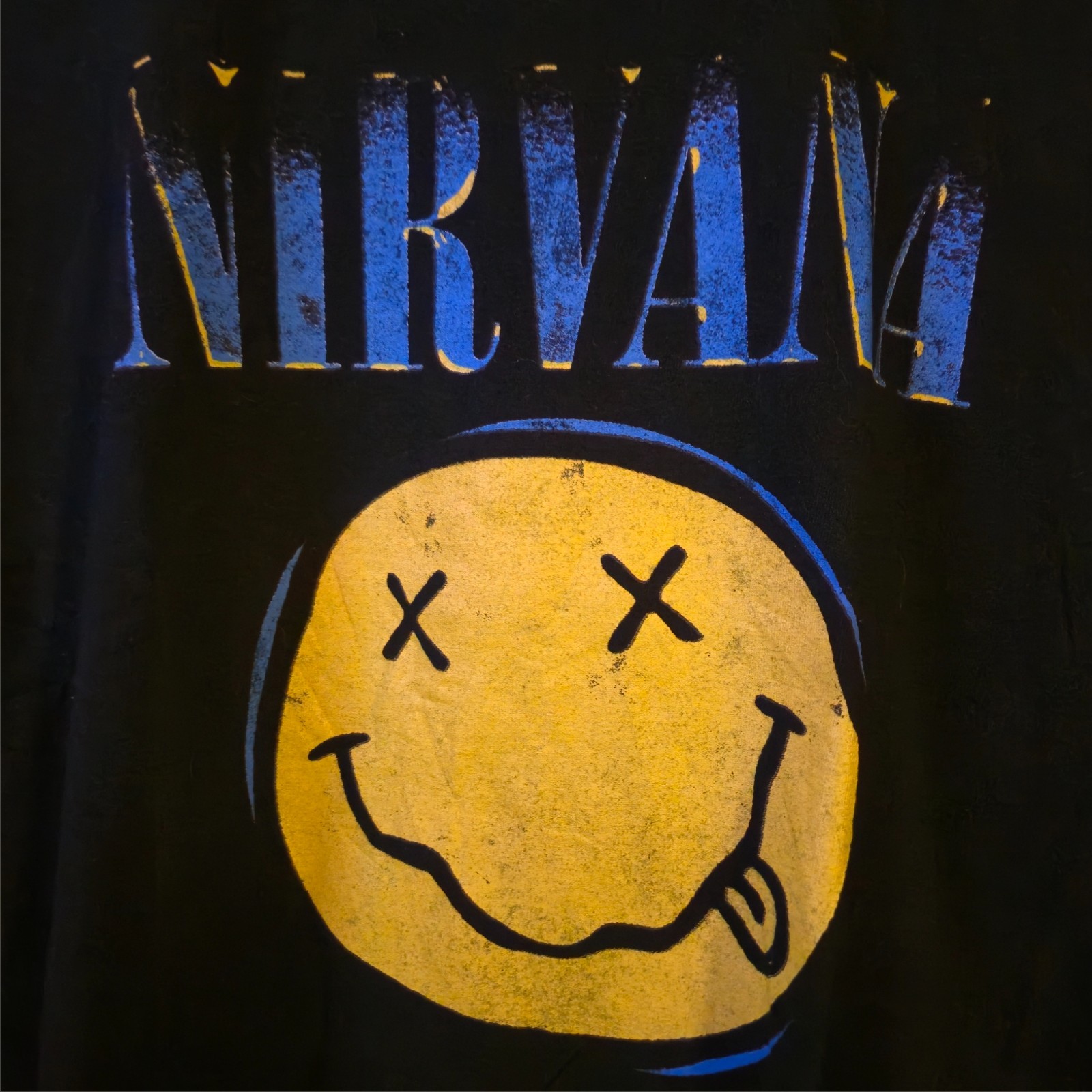 Vintage Style Nirvana Smiley Face T-Shirt – Black – Size Large – Grunge Band Tee